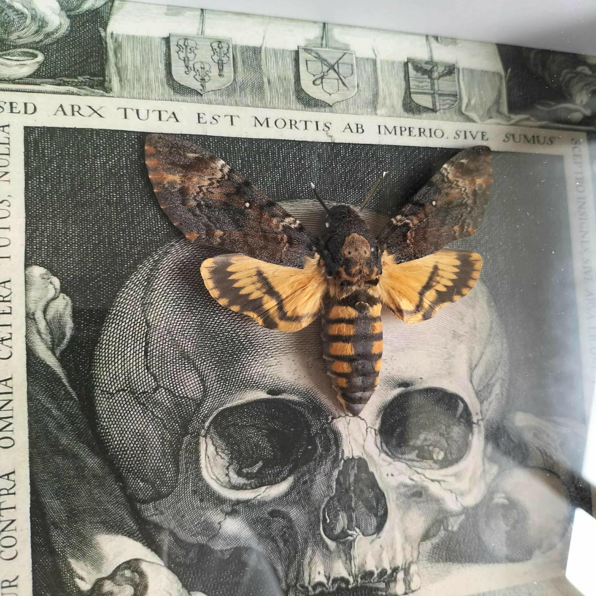The Acherontia atropos, famously known as the Death’s-head Hawkmoth, is an extraordinary species admired for the distinct skull-like marking on its thorax and its deep, dramatic tones. Ethically sourced and beautifully preserved, this striking specimen captures the mystique and symbolism of transformation and strength. A captivating addition for collectors, artists, and admirers of nature’s more enigmatic beauty.