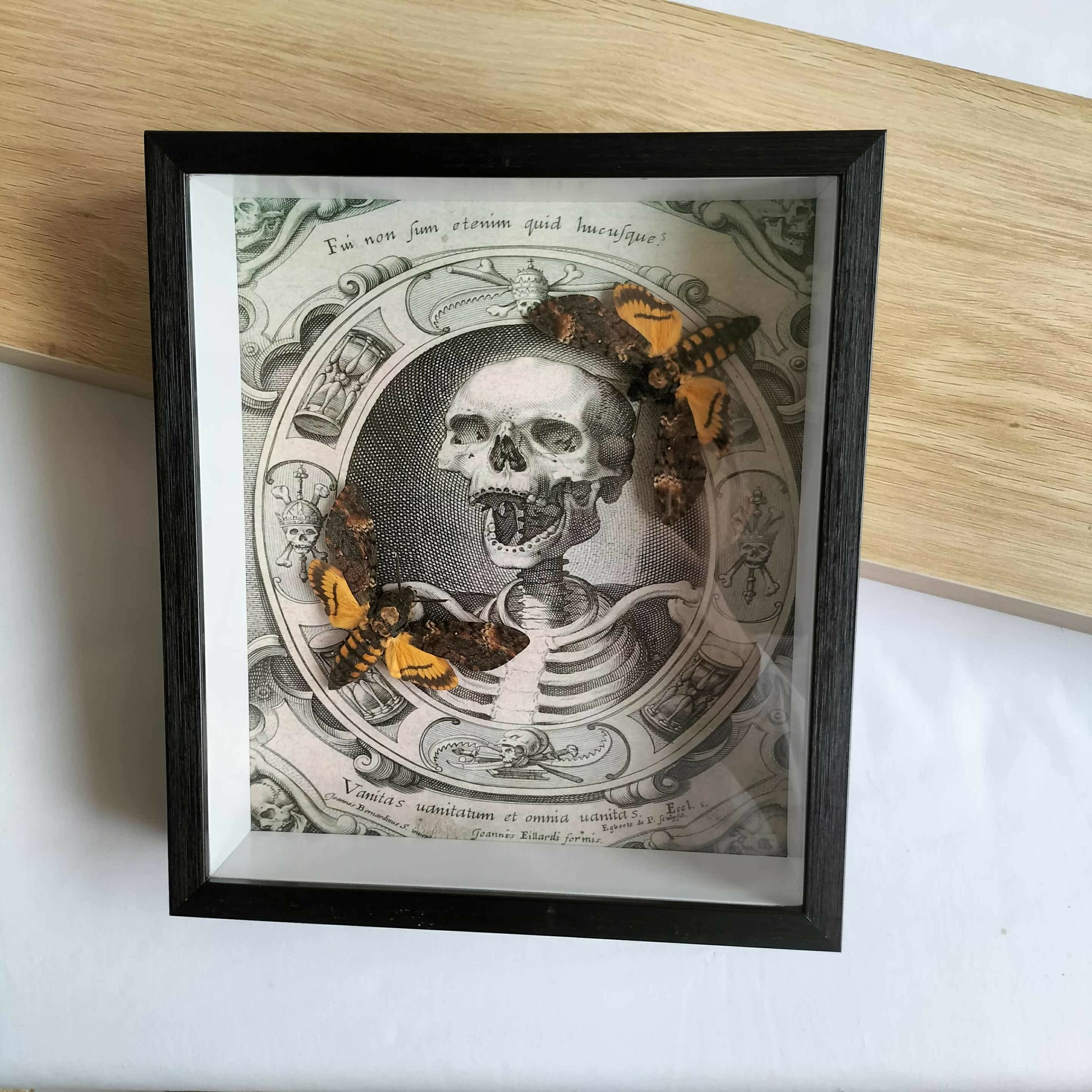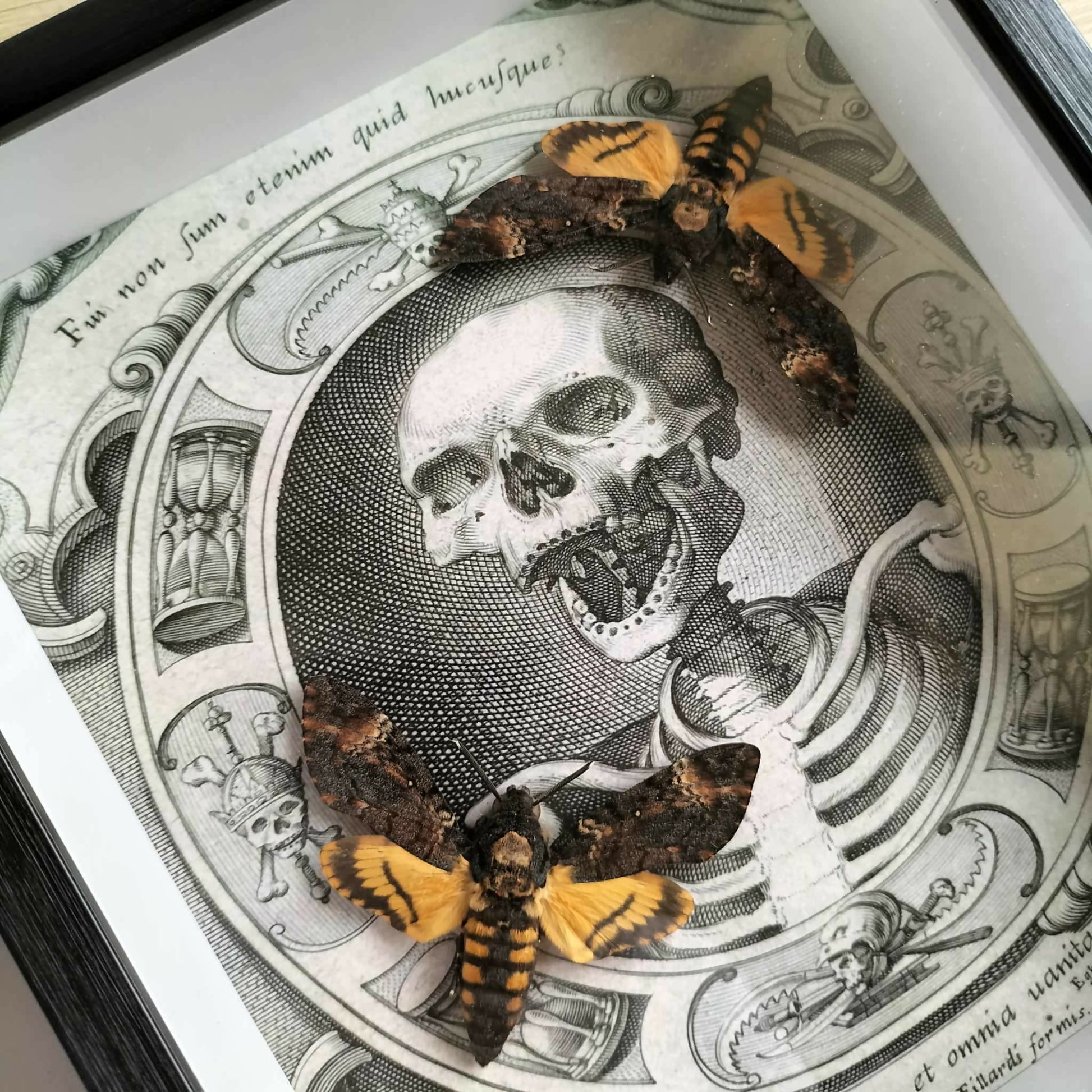 The Acherontia atropos, famously known as the Death’s-head Hawkmoth, is an extraordinary species admired for the distinct skull-like marking on its thorax and its deep, dramatic tones. Ethically sourced and beautifully preserved, this striking specimen captures the mystique and symbolism of transformation and strength. A captivating addition for collectors, artists, and admirers of nature’s more enigmatic beauty.