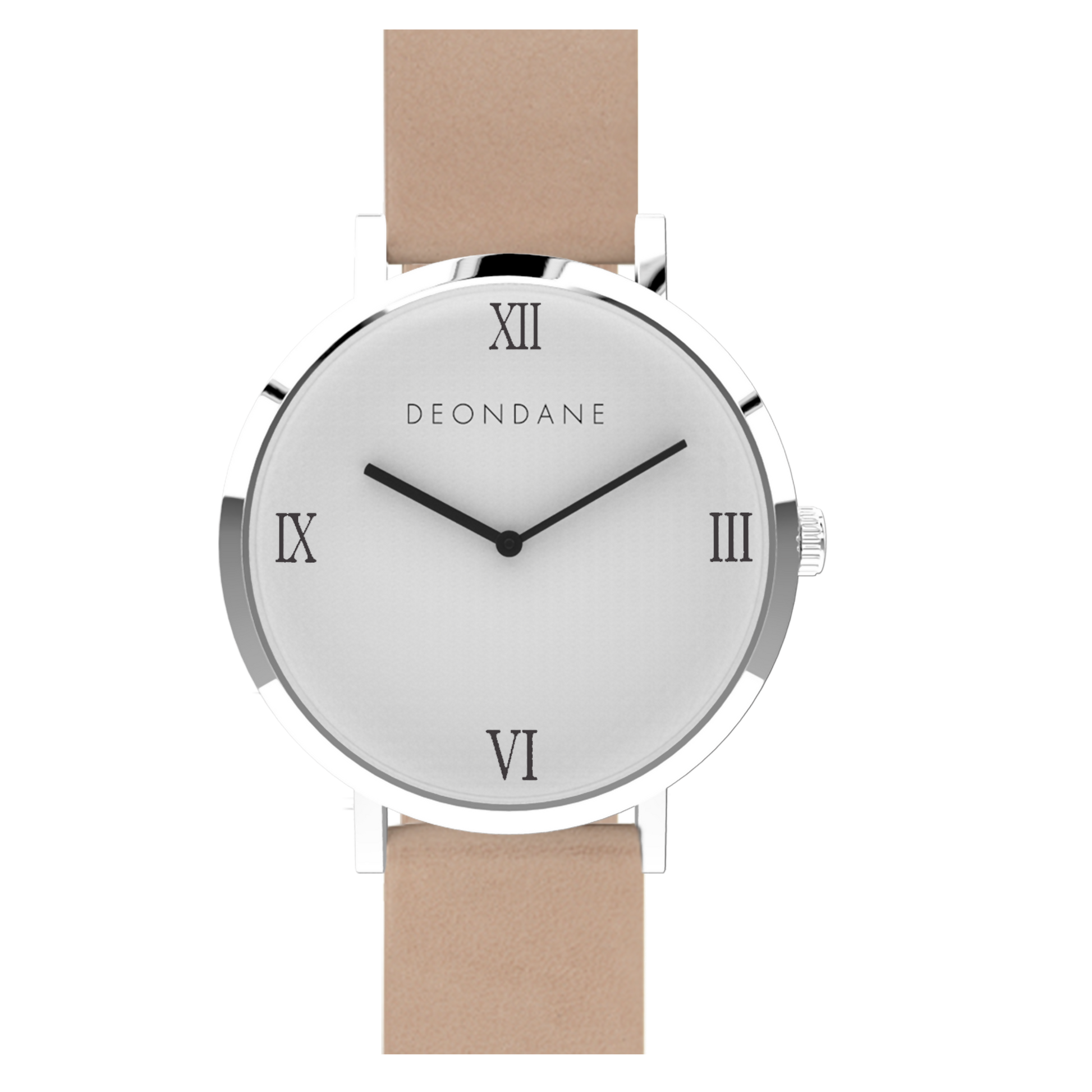 The Silver Numeral watch features interchangeable straps - available in Black, Tan or Natural.